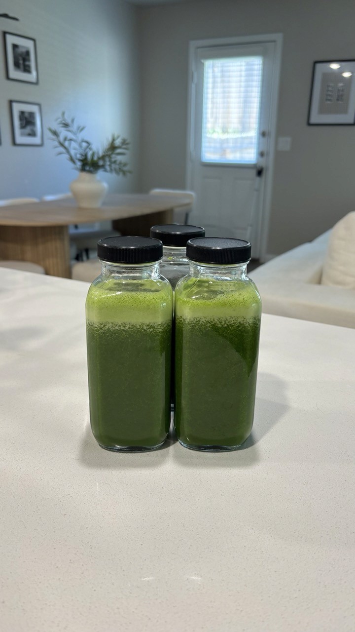 Stir the strained juice well to combine layers, taste for balance (add ice or more lemon if desired), then pour into clean glass bottles. Seal and refrigerate for 1-2 hours before drinking. Shake vigorously before each serving. Yields about 24-32 oz (3-4 servings). Enjoy within 48 hours for best nutrition!